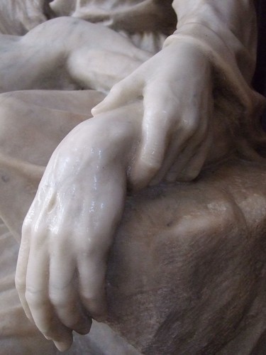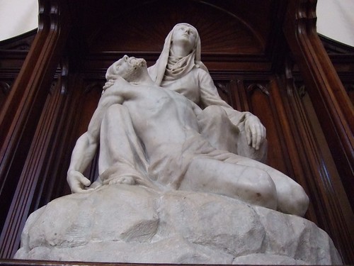 Thomas took some photographs of the Pietà in our church. It is Italian marble and was shipped here from Rome around 1900. The hand of Jesus is worn smooth by over a hundred years of prayerful touches.